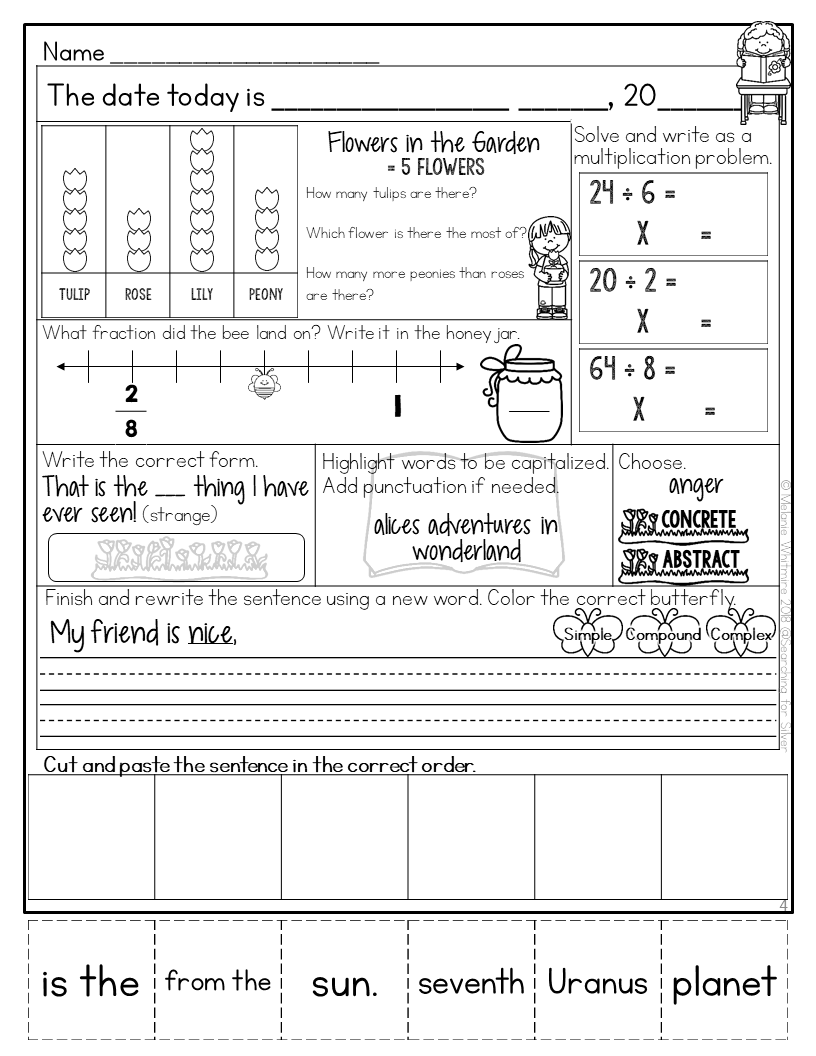 What a great start to the day! Children get a rigorous, fun and engaging brain workout with literacy, math, language arts, writing, facts, and more! This could be used as distance learning, morning work, homework, in a homeschool setting or for fast finishers. This packet could also be used as a review for fourth graders, or for advanced second graders.