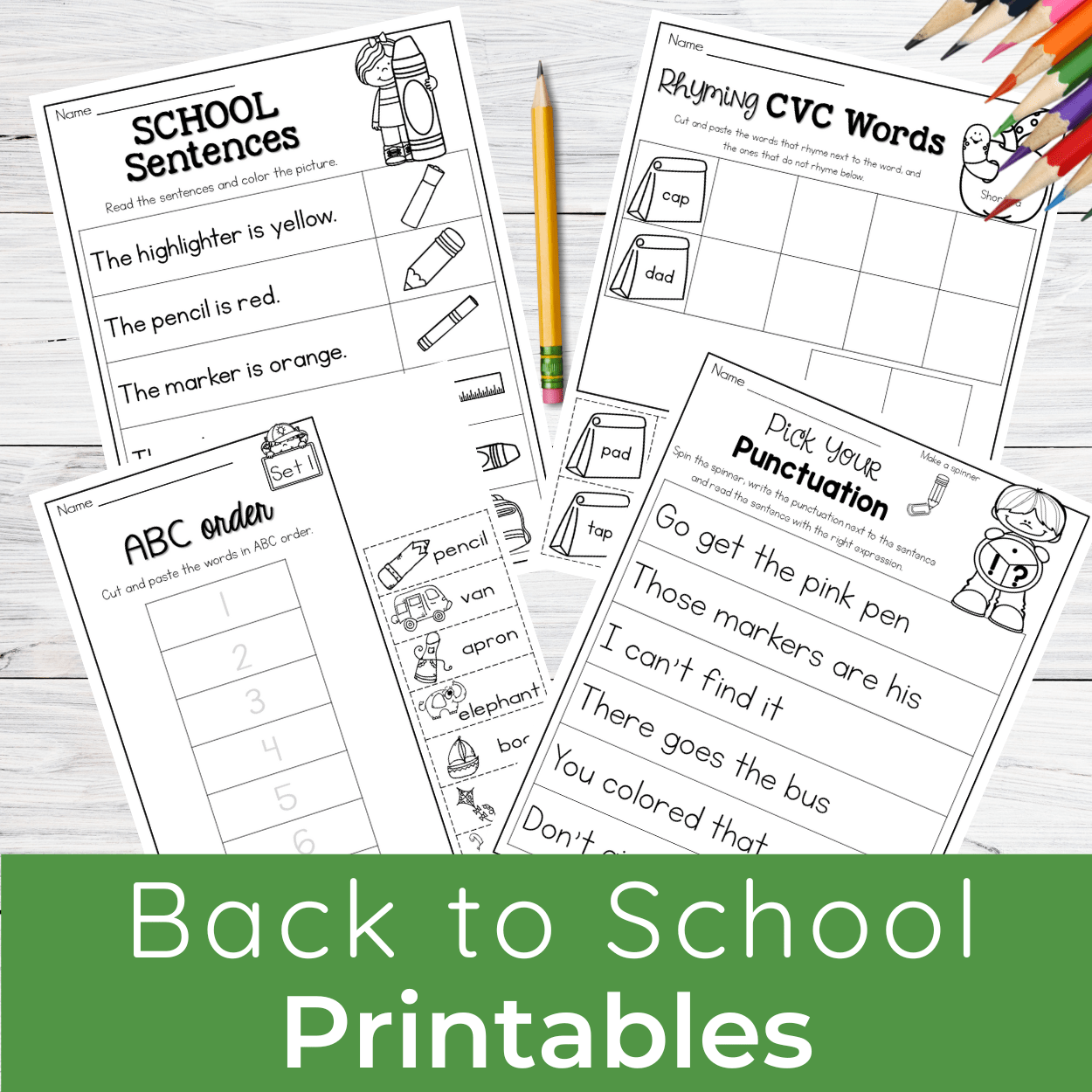 This packet contains first-grade skills perfect for the first few months of school. These pages can be used for math and literacy centers, morning work, homeschool, part of a lesson, or homework. With cute school graphics, these printables can be used any time of year!