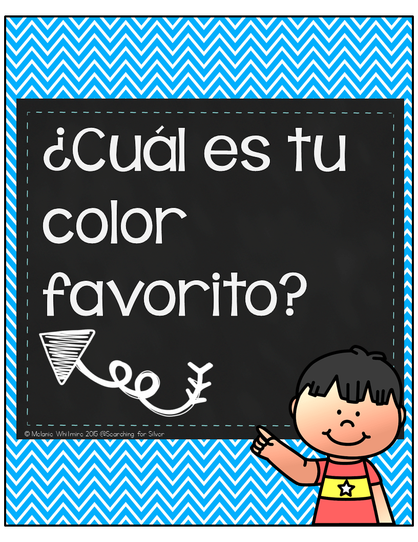 -to hang up, practice, and reference as students are learning colors. “¿De qué color es…?” means What color is… and can be applied to nouns to ask what color it is. Students answer by saying “Es (color).” “¿Cuál es tu color favorito?” means “what is your favorite color?” To answer, children will say “es. (color).”