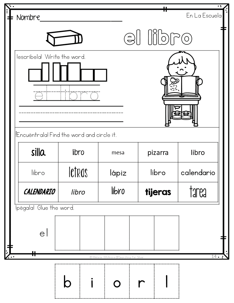 Individual School Word Sheets: students practice coloring, spelling, tracing, identifying, writing and constructing each school vocabulary word.